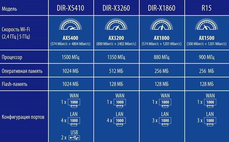 На данный момент новая линейка маршрутизаторов представлена четырьмя моделями: DIR-X5410, DIR-X3260, DIR-X1860 и R15.