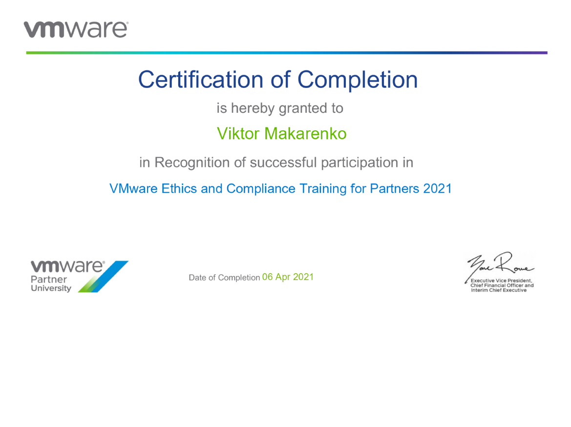 Наша компания продлила статус авторизованного партнера VMware